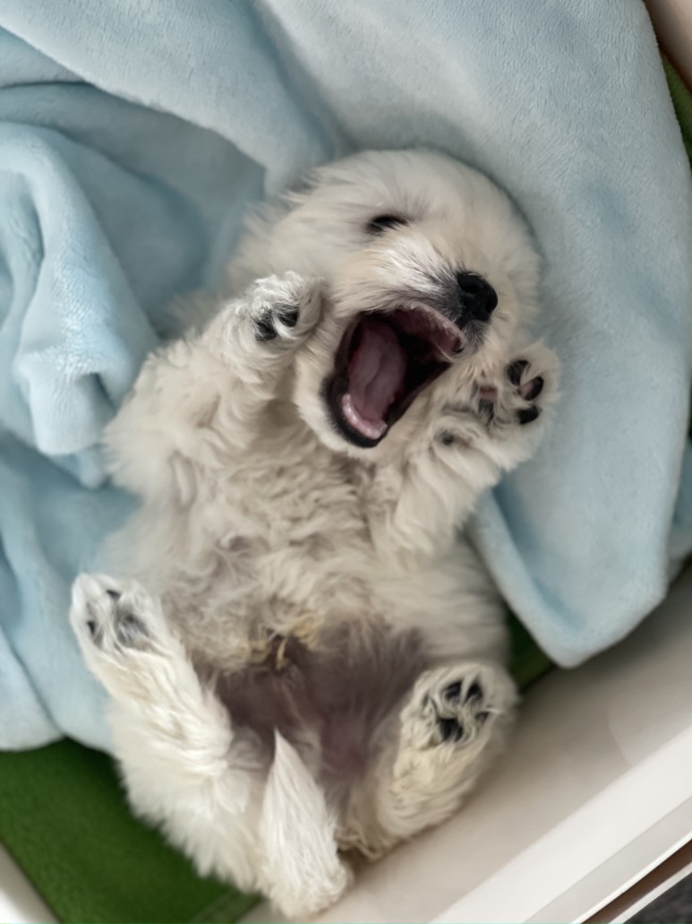 집에 돌아온 다음날 일요일 아침에도 사료를 거부하고 설사를 하고 심지어는 응아 자세를 취해 힘을 주어도 응아가 나오지 않아 불편해 했습니다. 강아지를 처음 키워보는 우리도 뭔가 느낌이 이상해서 동물병원에 전화를 해보면 강아지가 24시간 이상 먹지 않으면 저혈당으로 위험해질 수 있다며 빨리 병원에 데려오라고 합니다.오전 11시경 병원에 도착하자마자 혈액검사(역시 저혈당 TT)에 수액을 맞고 엑스레이를 찍어도 원인을 찾을 수 없고, 조영제까지 사용하여 오후부터는 시간마다 엑스레이를 찍고, 결국 일요일에는 오프인 원장까지 늦은 저녁에 병원에 출근하여 초음파까지 확인한 후 역시 탈장된 부위에 문제가 있다는 사실을 확인하게 됩니다.