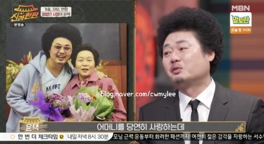 또 윤택 씨는 “IT업계의 초기 거품이 꺼지면서 회사에 위기가 찾아왔다”는 말을 계속했다. 당시 7억원, 현재 추정가치 70억원 정도의 빚을 지고 파산했다. 부모님 집도 빚을 모두 떠안았고 급기야 신용불량자로까지 전락했다. 최고의 불효였다며 본명은 임윤택으로 활동해야 했던 시절을 털어놓았다.