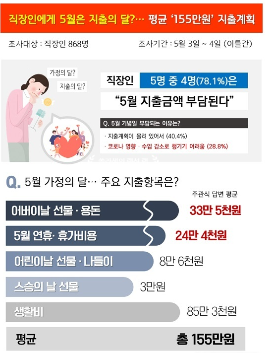 안녕하세요? ^^계절의 여왕답게 오늘도 날씨가 짠~해서 좋은 목요일 아침입니다.어제는 어린이날이라 쉬는날이었기 때문에 월요일과 같은 목요일이네요.5월은 어린이날을 시작으로 어버이날, 스승의날, 부처님오신날 등 가계지출이 많은 달이라고 합니다.저희 집도 이미 아이들 선물과 제 자신에게 셀프 선물로… 조금 부담되는 달이네요