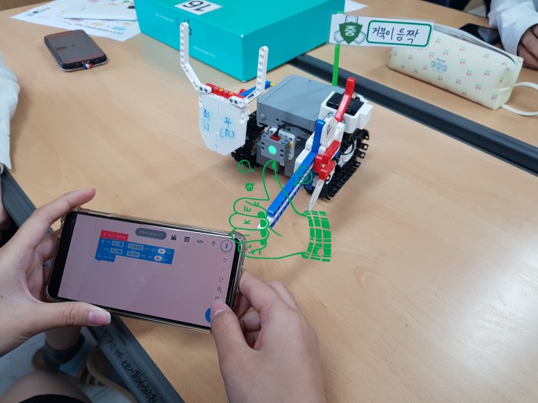 테슬라는 전기차 분야에서 대표적인 기업이며 전기차 시장에서도 46%의 압도적인 점유율을 가진 회사입니다얼마 전 기사에서도 테슬라의 차를 자율주행 모드로 해 놓고 둘이서 암암리에 기사를 접했습니다.아직 기계는 인지하는 수준이지 인식하는 수준은 아닌 것 같아요.물론 이러한 혁신은 또한 인류를 더 풍요롭게 할 수도 있지만 한편으로는 너무 빨리 기술이 성장하는 것 같습니다.오늘은 미래에 대해 학생들과 고민하고 준비하여 기회가 왔을 때 잡을 수 있도록 돕는 것이 오늘 수업의 목적이었습니다. 해당 앱을 설치하고 조립을 시작합니다.