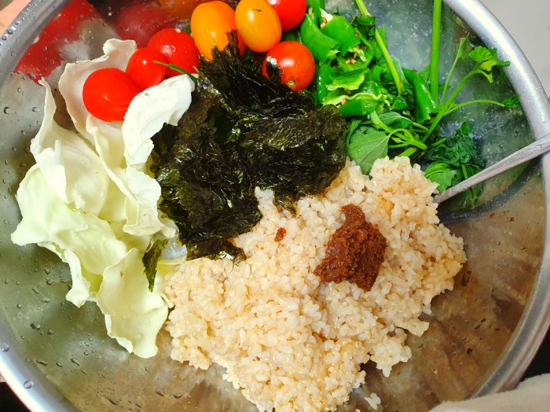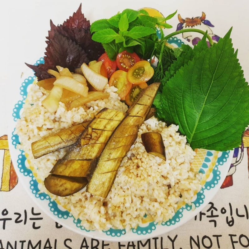 간편식, 자연식물식, 채식, 건강식단, 가지, 비건마요네진된장 현미 주먹밥 비건요리