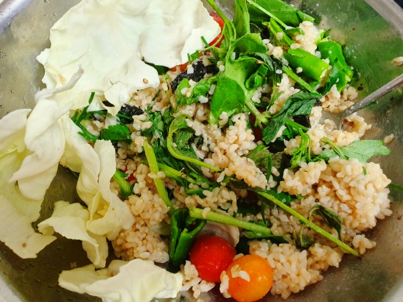 가지현미 주먹밥 재료 가지비건 콩 마요네즈 된장 트러플 오일(올리브오일) 소금후추 현미밥 참기름간장