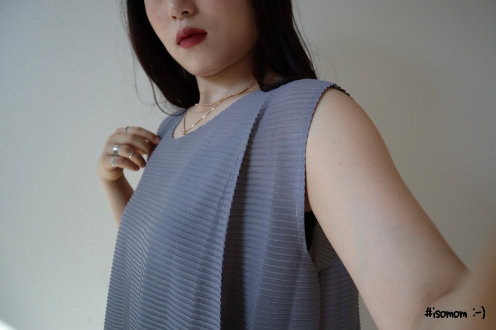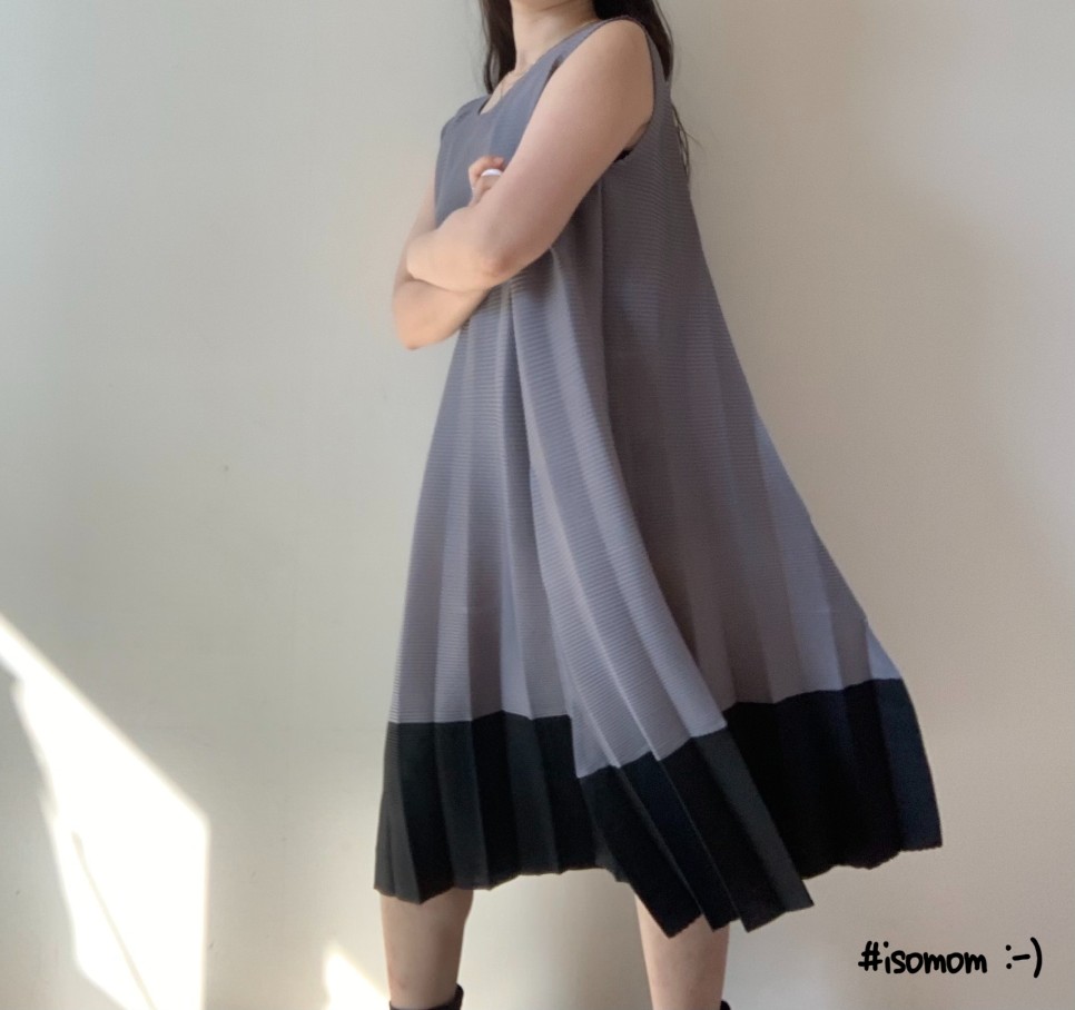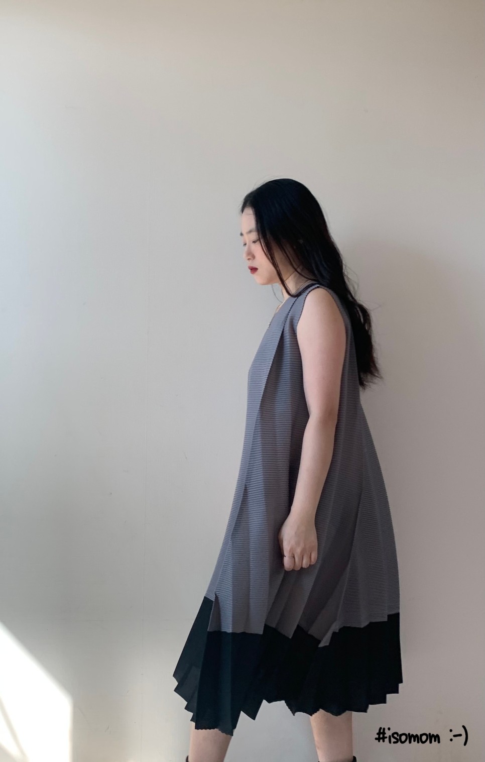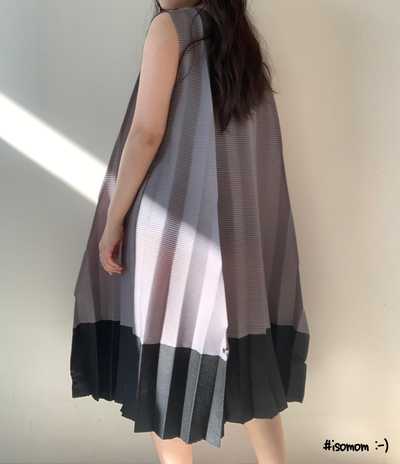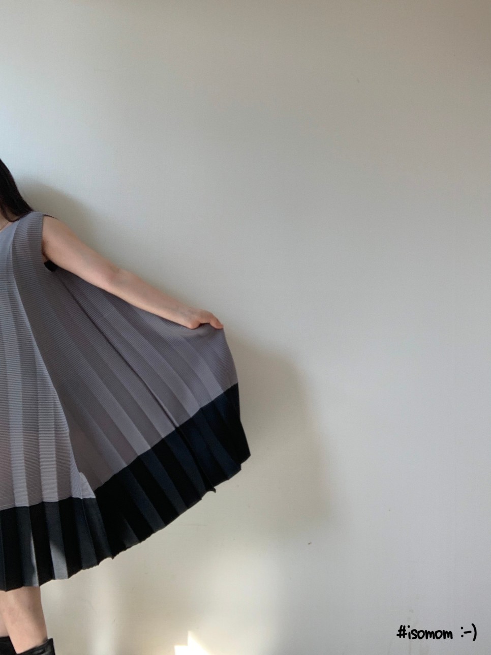 • 가로, 세로 폭 넓은 계단의 주름을 이중으로 교차!고급 원단을 고집하기 때문이라고 합니다.폴리에스테르 100%의 사진을 보시고 이미 아시는 분들도 계시겠지만, 기존에 자주 보던 세로주름 주름과는 차이가 있겠죠? 이는 새로운 형식의 주름법을 적용시켜 기본 옆주름을 베이스로 하면서 세로 방향의 폭 넓은 계단주름을 이중 교차시킨 플리츠 민소매 원피스랍니다.세로 주름을 잡기도 힘든데 가로+세로 이중교차라니 저는 평소에도 딱 맞는 미니스커트보다 품이