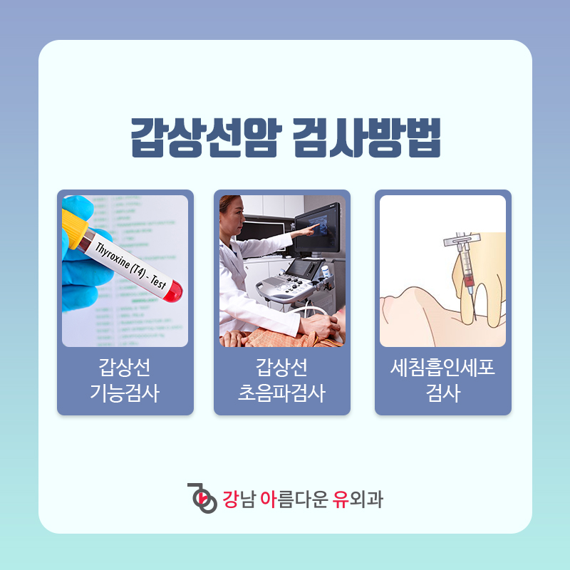 갑상선암은 여러 가지 방법으로 검사가 진행됩니다.