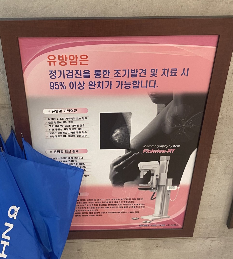 x선 촬영 기계인 맘모그래피 검사 시 유방에 어느 정도 압박이 가해질 수 있으며 임신이나 수유 중인 경우 알려주시기 바랍니다.촬영할 때는 수술 여부 정도만 체크했어요.