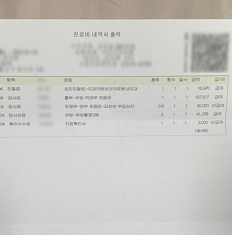 (갑상선 초음파까지 진료보고) 실비 청구완료 건강보험 적용된 유방촬영 및 유방초음파/