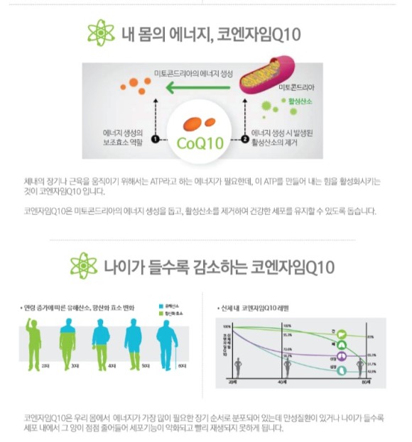 코엔자임큐텐은에너지를생성하는데필요한필수성분으로다량의에너지를발생시켜활력을증진시킨대요.또한 유해활성산소를 제거하여 세포를 보호하는 항산화작용도 합니다. 혈압 유지에도 도움이 되고,
