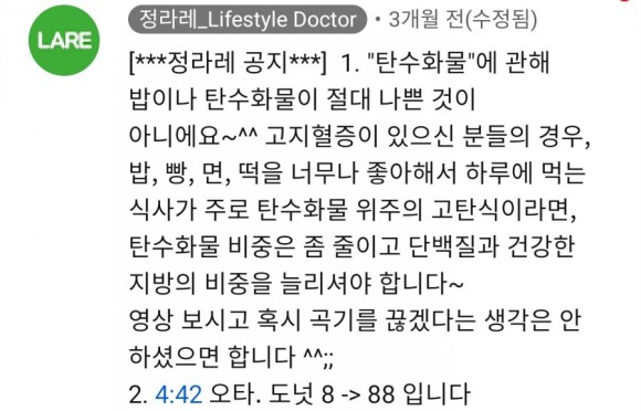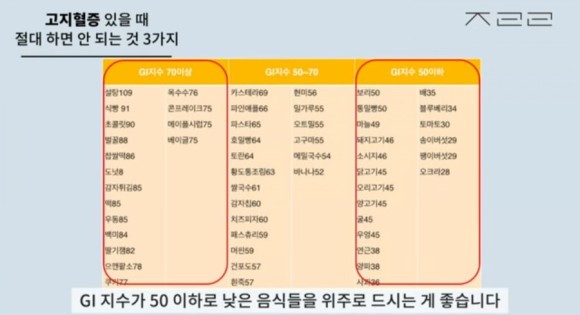 ★고탄수화물 식사 고지혈증은 나쁜 지방을 많이 먹어도 생기지만, 탄수화물 때문에 생기는 경우도 많습니다.탄수화물→포도당→글리코겐→중성지방, 과도한 탄수화물은 고혈당 상태로 유지하는 것이 아니라 지방 형태로 저장되는 것입니다.이렇게 저장된 지방을 중성 지방이라고 합니다.검진 결과지에는 ‘GT(Triglyceride)’로 표기되기 때문에 고지혈증의 경우 밥, 빵, 국수, 떡 등을 조금 줄여야 합니다.한숨 쉬셔야 돼요