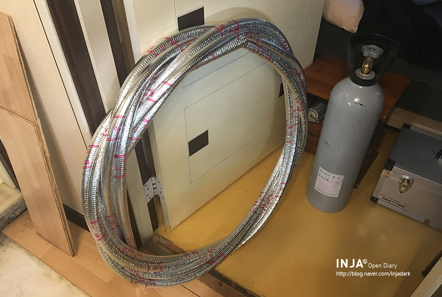 되도록 더럽히지 않도록 배관을 벽으로 쭉쭉 돌립니다.작업하다 보면 뭔가 집이 스팀펑크 인테리어가 될 것 같은? -0-;