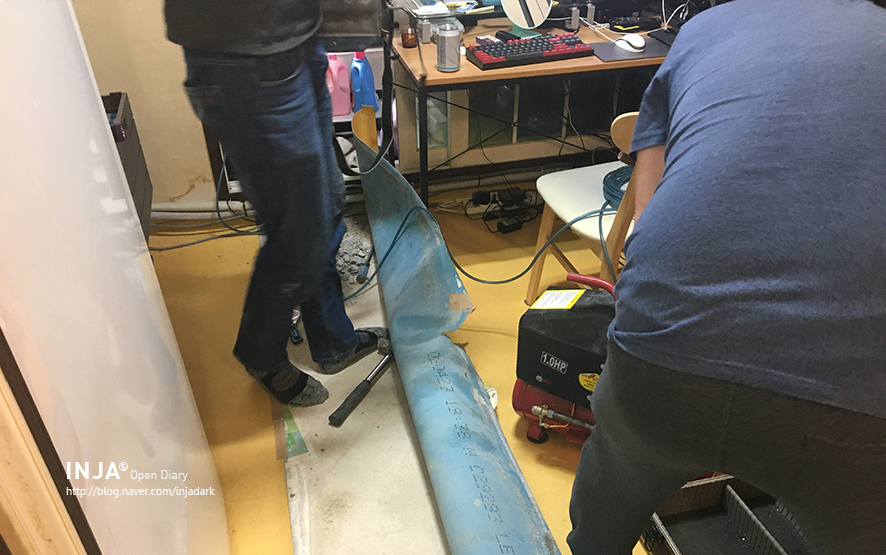 비용도 많이 들지만, 그것보다 다 따서, 찾고, 공사하고, 다시 조이고, 그로 인한 소음과 작업시간 등을 신경 쓰다 보면, 모든 과정으로 인한 스트레스가 나에겐 더 큰 문제.(유리멘탈이라…) ㅠㅠ) 사장님! 작전타임!! “