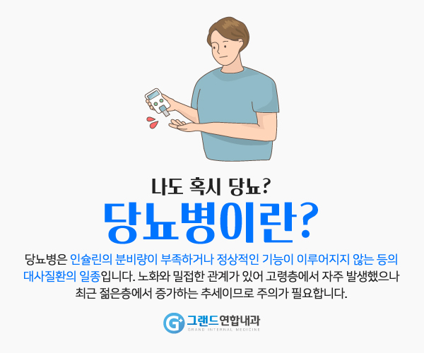 우선 춘천 당뇨는 인슐린의 분비량이 부족하거나 정상적인 기능을 하지 못하는 등의 대사 질환의 일종으로 혈중 포도당 농도가 높은 것이 특징인 질환입니다. 이는 가까운 친척, 가족 중에 당뇨병 환자가 있을 때 발병률이 높아져 서구화된 식습관이나 운동부족 등의 환경적 원인이 되기도 합니다. 이런 당뇨병은 그랜드 연합내과에서 치료하는 것이 중요하지만 무엇보다 올바른 생활습관을 유지하고 저지방 식사를 유지하며 예방하는 것이 중요합니다.