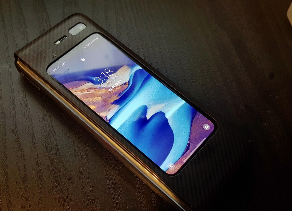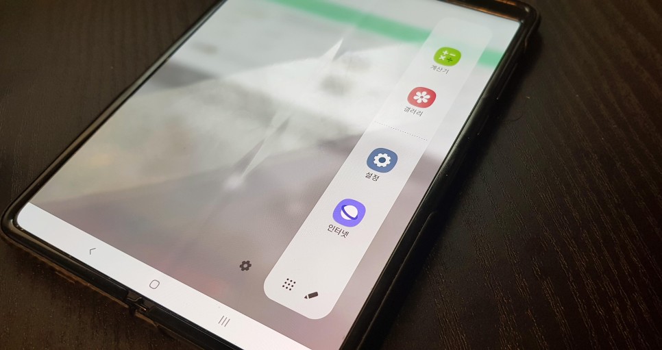 펼친 화면에서 본 스마트 폰의 디스플레이는 대략 7.3 인치 정도입니다. 사실상이정도라면가지고다니기에도편리한태블릿의크기라는장점이있음은물론,이렇게넓은화면으로간단하게즐길수있는영화나드라마를보아도아주좋은만족감을느끼게됩니다. 또 무게도 그렇게 무거운 편이 아니라 누워서 드는 것도 나쁘지 않습니다.