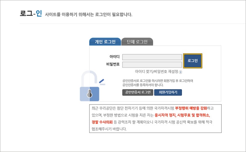 (@ 한국산업인력공단 경기북부지사) 담당자를 찾아가 접수 요청을 하자 준비된 컴퓨터에 앉아 큐넷에 로그인하라고 한다.로그인만 되면 담당자가 사진 스캔 및 접수를 완료한 후 5분 이내에 #수첩형 자격증을 배포해줬다.