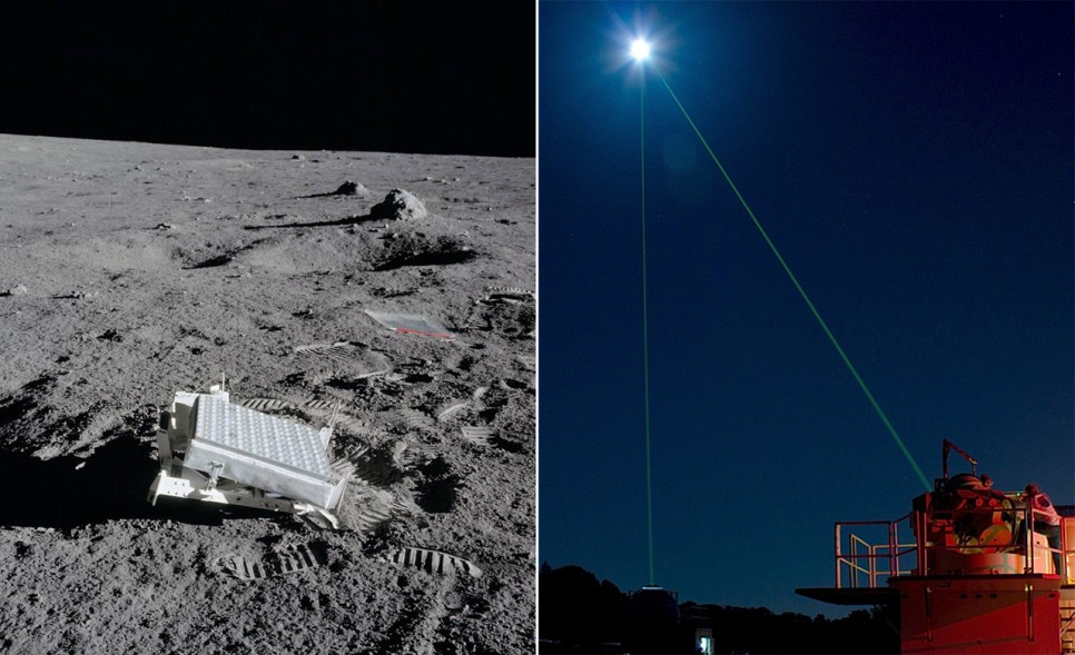 아폴로 11, 14, 15호는 착륙 지점에 ‘달 레이저 거리 측정 반사판(Lunar Laser Ranging Retroreflector, LLRR)’을 설치하여 지구와 달 사이의 정확한 거리를 측정하는 데 성공하였습니다. 그 후 레이저는 90년대까지 탐사기의 거리 측정 및 레이저 광학 통신의 개념 연구를 위한 실험에 활용되었습니다.