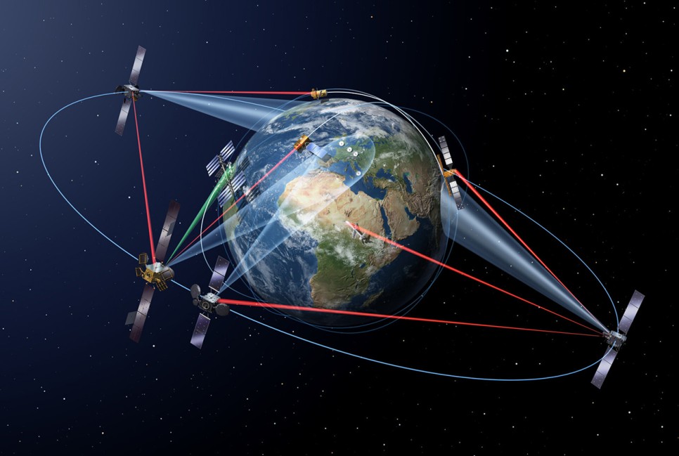 ESA와 에어버스가 협력하여 추진 중인 EDRS 개념도. 头 ESA 유럽도 위성간 레이저 통신 기술 개발에 박차를 가하고 있습니다. ESA는, 갈릴레오 네비게이션 위성의 통신 속도 향상을 위해서, 제2세대 갈릴레오 위성으로부터 「OISL(Optical Inter-Satellite Links, 위성간 광학 링크)」기술을 적용한다고 발표했습니다. 레이저는 명칭만 다를 뿐, ISLL와 같은 의미입니다. 그 외 , 「EDRS(European Data Relaysatellite System, 유럽 데이터 중계 시스템)」라고 하는 차세대 위성통신망도 추진하고 있습니다. EDRS는 전파와 레이저를 이용하여 정지궤도 위성과 저궤도 위성, 지상을 연결하는 초고속 통신망입니다.