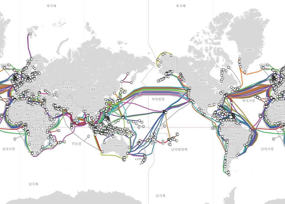 현재 구축된 해저광케이블망 ☜ PriMetrica, Inc 전세계 인터넷의 해외 연결망 트래픽은 90% 이상을 해저광케이블이 담당하고 있습니다. “해저광케이블망은 인구 밀집지역을 중심으로 연결되며, 지역 허브를 중심으로 지상 케이블망과 3G, 4G 등 무선 통신망이 펼쳐져 있습니다” 반면 인공위성 트래픽은 1%에 불과합니다.