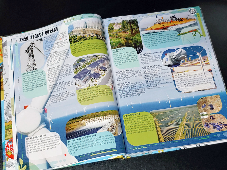 특히 기네스 세계기록 2022는 기후변화가 만들어낸 새로운 기록을 담고 있습니다. 세계적으로 환경에 대한 관심이 높아지고 있는 요즘 아이들에게 좋은 교육자료가 될 것 같습니다. 기후변화와 쓰레기 문제, 플라스틱 등 환경오염에 관한 기록도 다루고 있는데요, 재생 가능한 에너지처럼 긍정적인 내용도 수록되어 있기 때문에 저도 많이 배웠습니다.