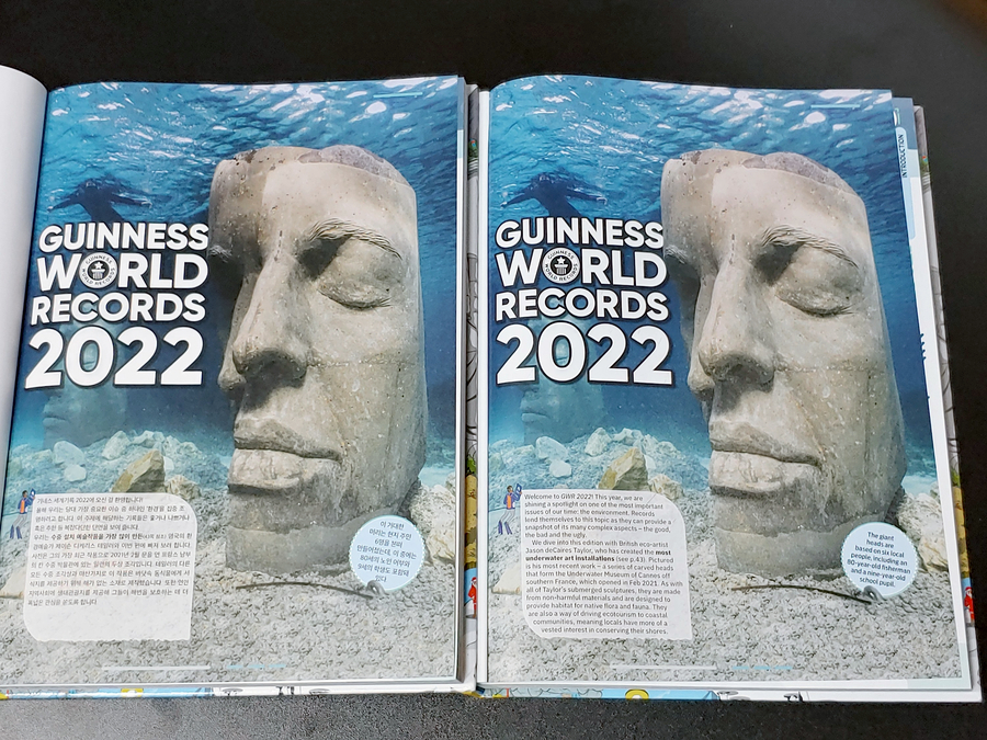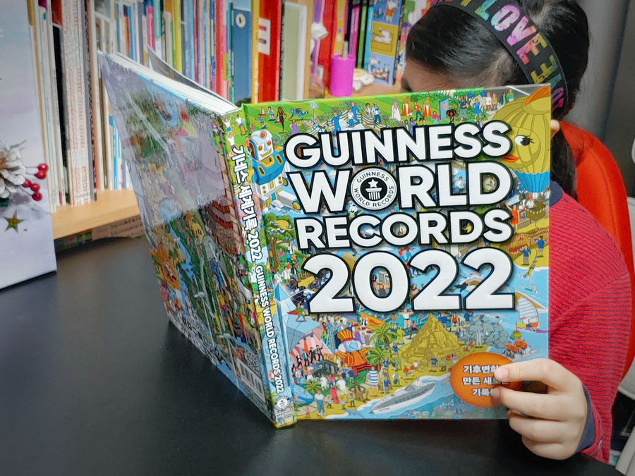 아이 방학이 어제부터 시작되었습니다! 우리는 가능한 한 집안 생활을 즐길 겁니다. 추운 겨울이라 그렇기도 하지만 조심해야 할 시기잖아요. 긴 휴식시간을 채우는 간접경험은 역시 책! 아이의 작년 크리스마스 선물목록에 올랐던 기네스북, 그 기네스북 한국어판도 있는 것을 저는 이번에 알게 되었는데요. 기네스 세계기록 2022, 영국판과는 또 다른 맛으로 어린이의 손이 간다는 것은 비밀이 아닙니다. 🙂