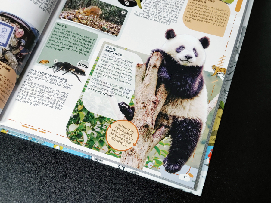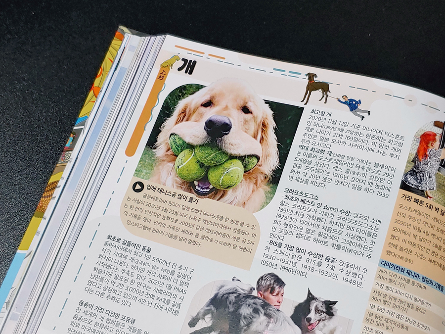 남녀노소가 좋아하는 토이스토리, 귀여운 동물들의 기록 등 책장을 넘길 때마다 눈길을 끄는 멋진 사진과 콘텐츠들이 정말 듬뿍 들어 있어서 시간 가는 줄 모르거든요. 미국의 테니스공을 많이 씹을 수 있는 리트리버 핀리와 중국의 대왕팬더 최대 규모의 서식지인 쓰촨 자이언트팬더 보호구역의 귀여운 팬더도 정말 귀엽죠?