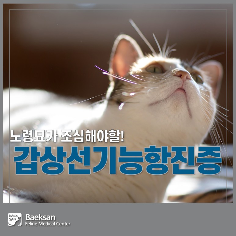 즉, 보호자 입장에서 보면 노령묘가 활력, 식욕, 식수량 등이 늘어나면 더욱 건강해질 것으로 생각됩니다. 이러한 증상이 갑상선 기능의 징후일 수 있기 때문에 노령묘의 경우에는 정기적인 갑상선 호르몬 검사를 권장합니다.