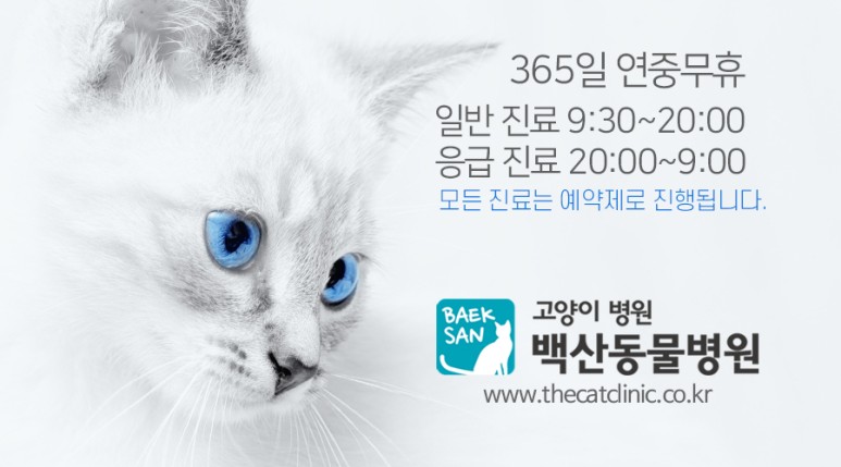 안녕하세요 고양이만 진료하는 고양이 병원 백산동물병원입니다