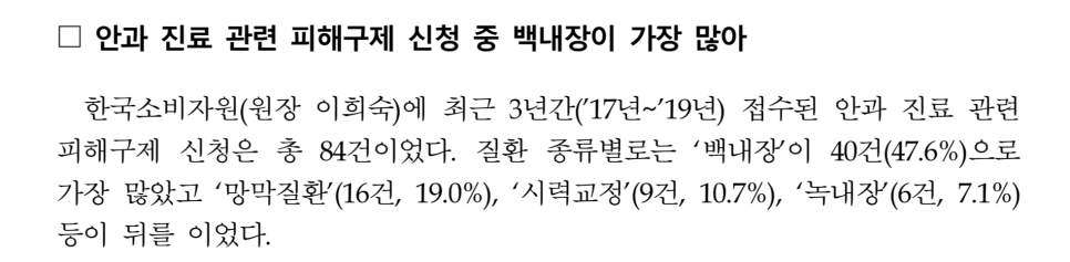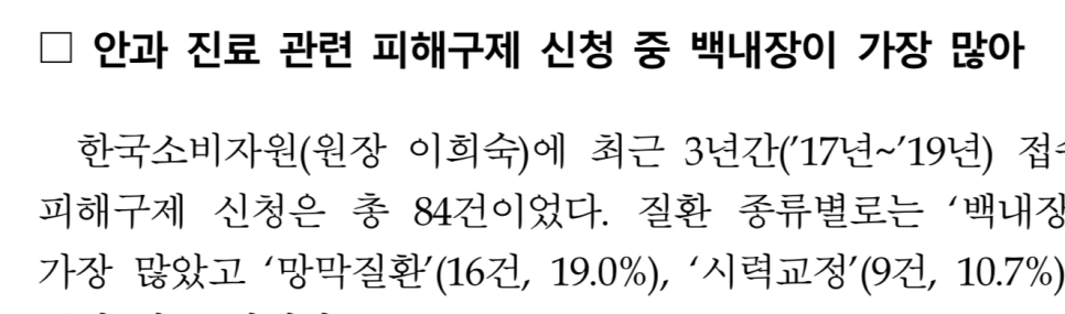 틀리면 안 되는 수술 1위 백내장 안과 진료 관련 피해구제 1순위가 백내장이며