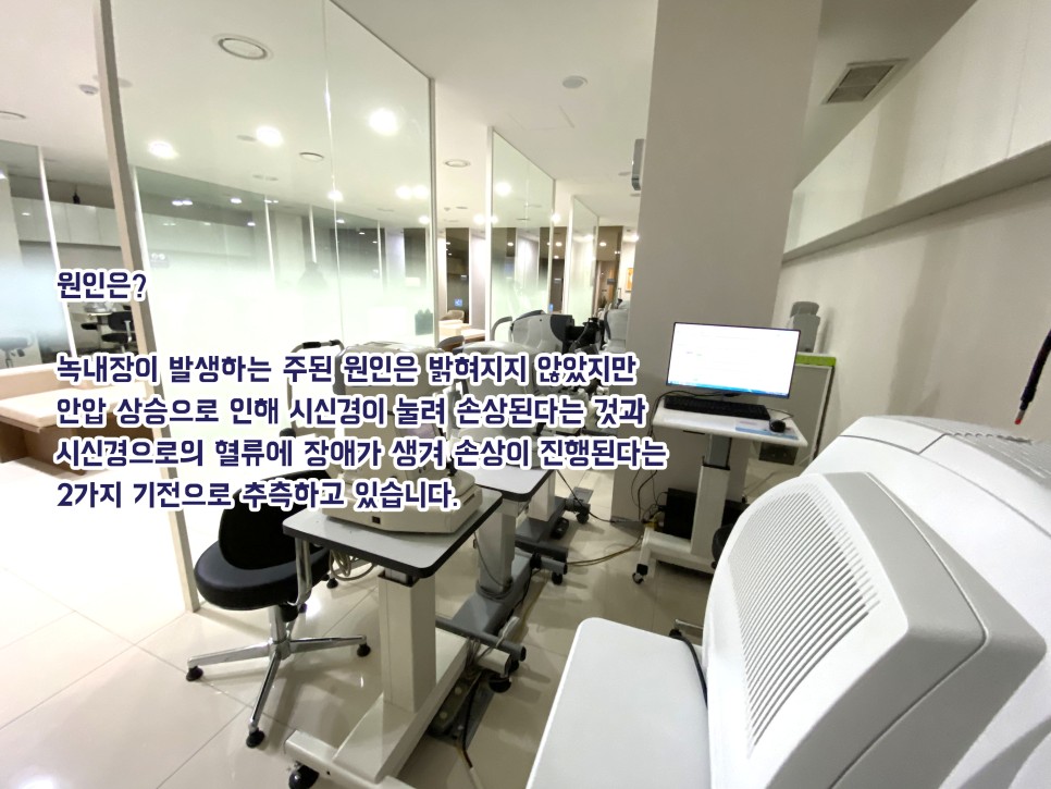 그리고 사람마다 녹내장 증상은 매우 다르지만 말기까지 본인이 느끼는 증상이 거의 없고 실명과 마주하는 비율이 매우 높기 때문에 기술이 발전한 오늘날까지도 주의와 관심이 필요한 질환으로 잘 알려져 있습니다. 그럼 그 질환이 생기는 이유는 무엇인지 원인에 대해 자세히 알아봅시다.