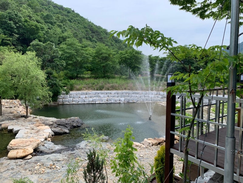 주차공간도 엄청 넓어요. 계곡도 있는데 사진을 못 찍었어요. 계곡 수심은 성인 남자 175km 기준으로 허리에서 조금 위?정도입니다 이점 참고해주세요.