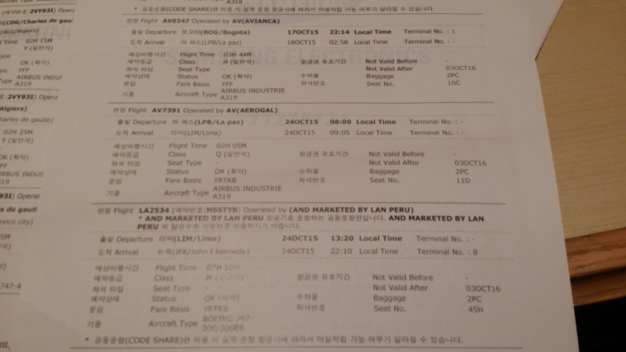 다음 목적지는 볼리비아까지 가는 직항편이 있을 리 없어요.콜롬비아 보고타를 통해 볼리비아의 수도 라파스에 다시 새벽에 도착합니다.