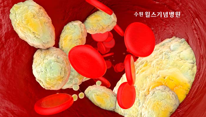 동맥경화증:동맥의 안쪽 내막에 콜레스테롤이나 중성지방이 쌓이면 혈관이 좁아져 아래쪽 혈관에 혈류장애가 발생합니다.