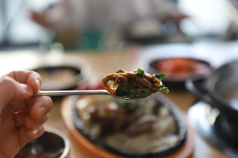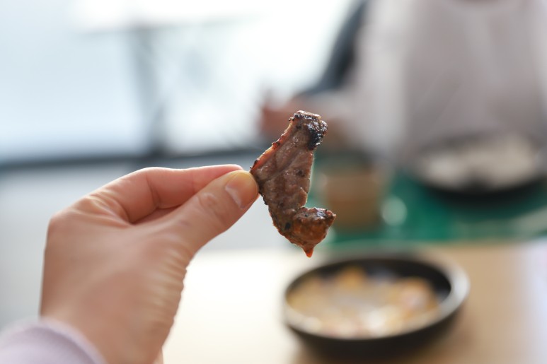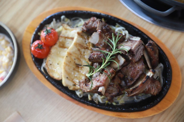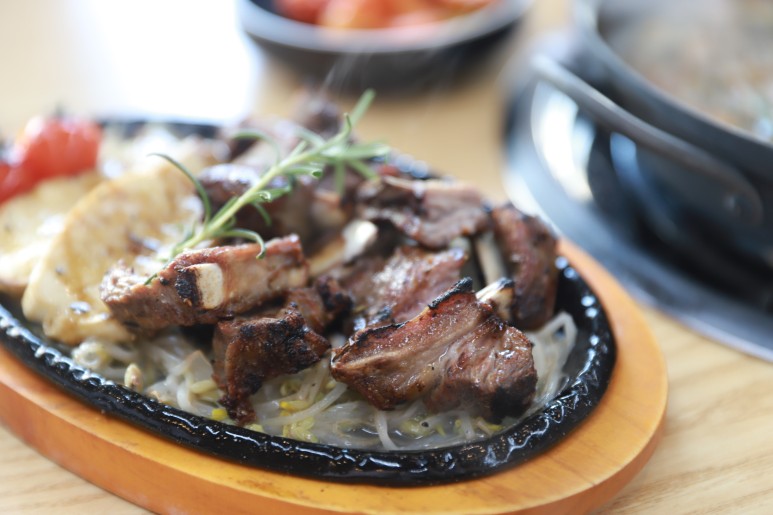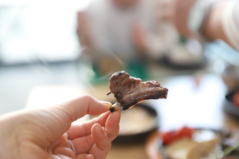 양갈비 한 구리가 나왔습니다전골은 맵지 않지만 우리 아이들은 매운 걸 잘 못 먹어서 안 매운 양갈비를 주문했대요.램 리브 한 입은 구워서 나오기 때문에 메뉴가 나오면 바로 맛볼 수 있습니다.
