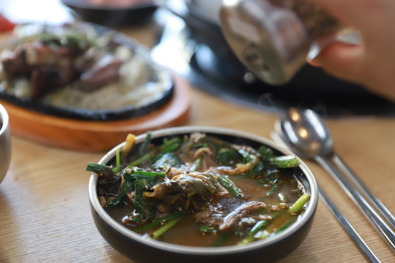 앞접시에 담아둔 양고기 냄비에 산초를 뿌려서 맛보기도 했어요산초가루는 처음이었는데 사장님이 추천해 주셨어요제가 원래 고수나 색다른 음식도 즐긴다고 했더니, 그렇다면 산초가루를 넣어보라고 하더라고요.산초를 넣으면 또 다른 맛으로 즐기실수 있어요~^^