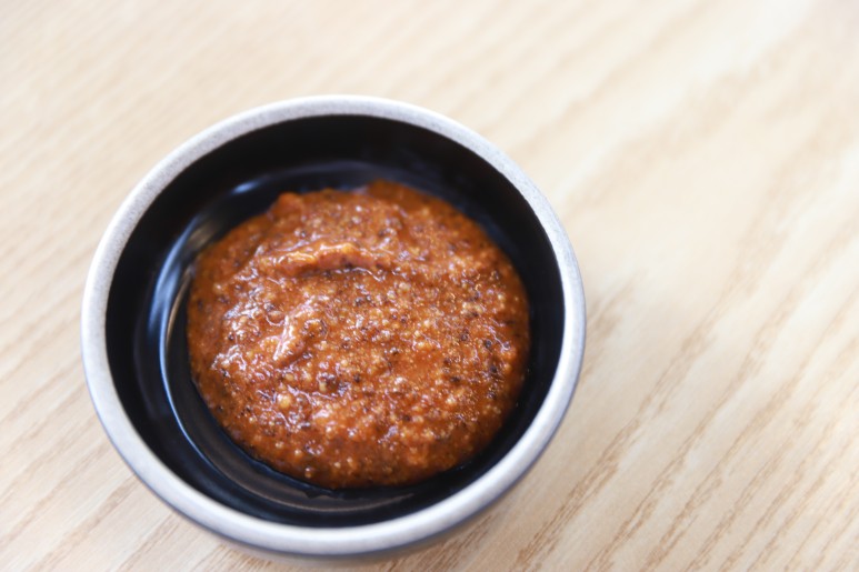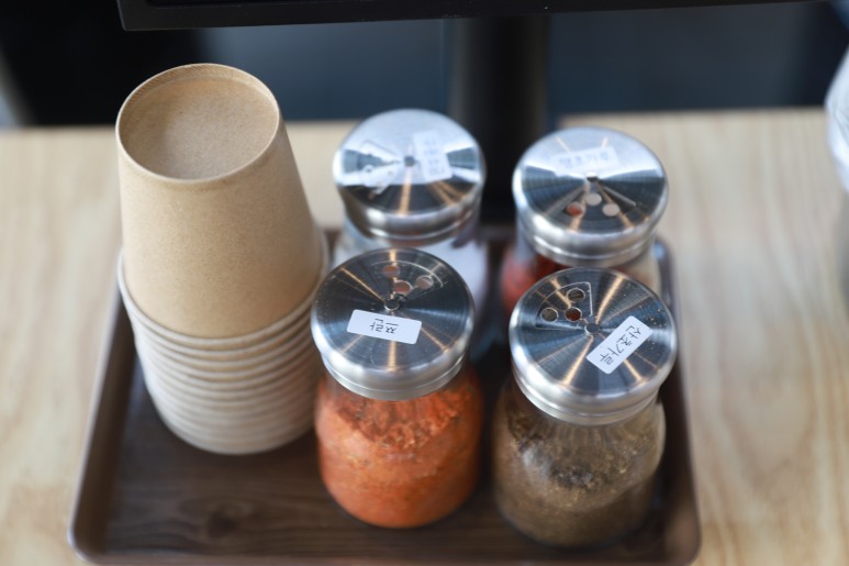 테이블마다 쯔란, 산초가루 등의 양념이 있기 때문에 개인의 취향에 따라 추가해도 좋아요.