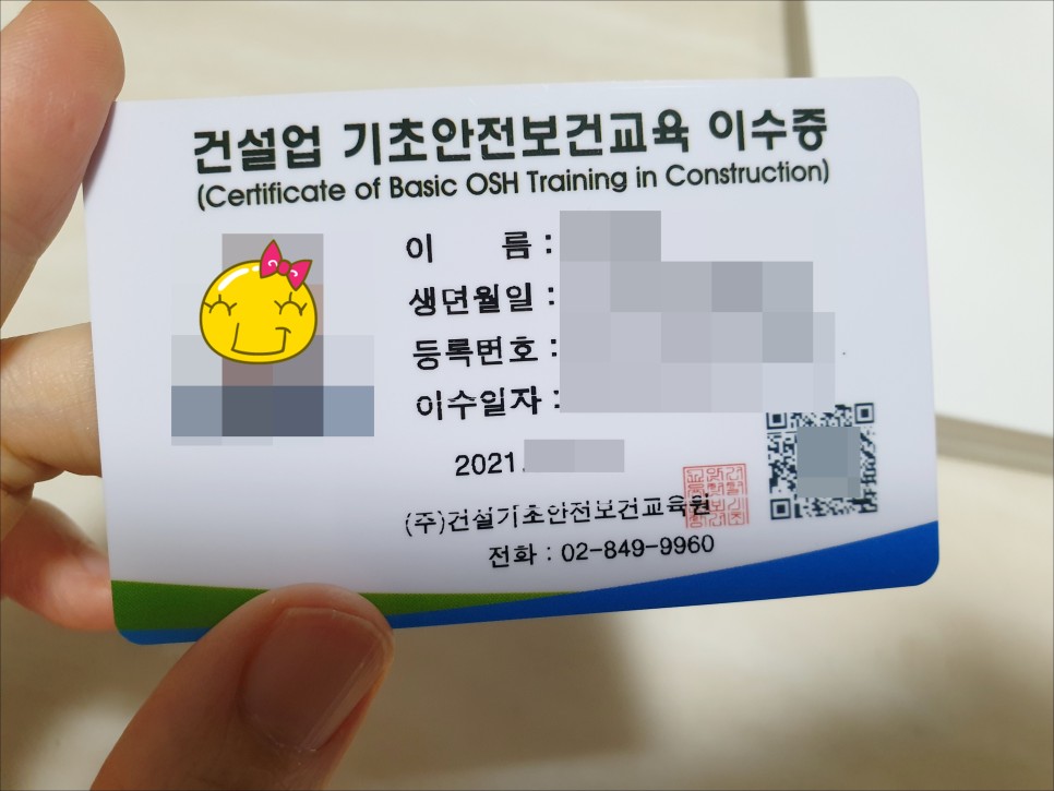 그렇게 4시간 교육을 받고서야 건설기초안전교육 이수증을 바로 취득할 수 있었습니다.지금은 이를 이용해 건설작업 현장에 참여하여 필요한 수업료를 충당하고 있습니다.