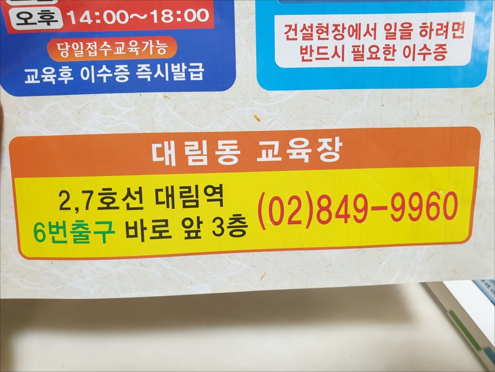 저는 서울 대림역에 있는 건설 기초 안전 보건 교육원에서 교육을 받았습니다