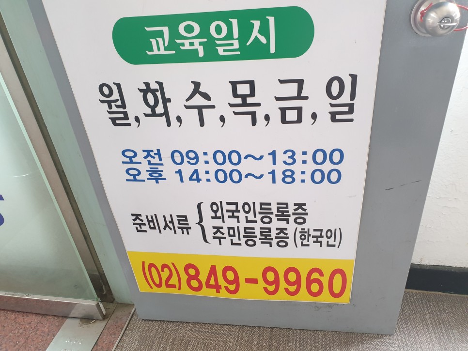 평일에는 오전 9시와 오후 2시 교육으로 구성되어 있었고, 일요일만 오전 9시 교육이 이루어졌습니다.저는 주말이 편할 것 같아서 일요일 오전 9시에 교육을 받고 왔습니다.교육비는 ᅵᄋ 教育 、이고, 필요한 것은 신분증뿐이기 때문에 빨리 수강하는 것이,
