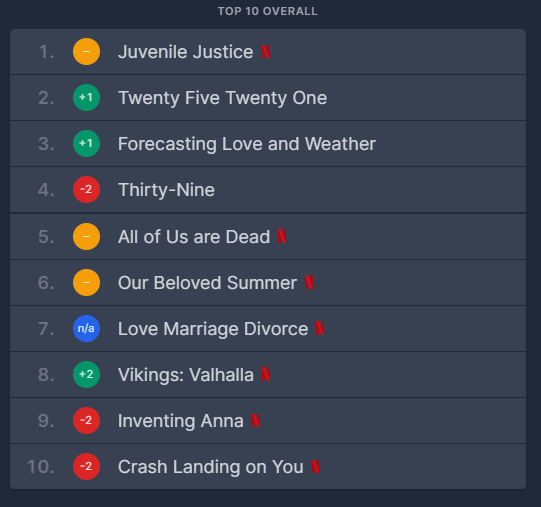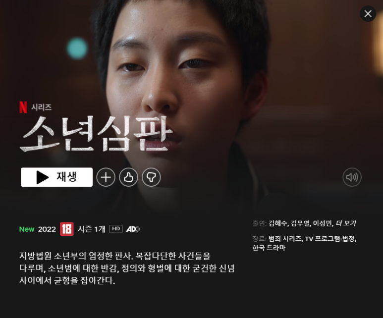 TV 드라마 부문에서는 최근 넷플릭스에 게재된 소년심판이 상위에 오르며,