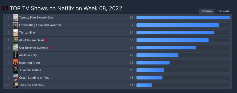 2021년에는 오징어 게임, 2022년 1월에는 ‘우리 학교는’ 등 한국 드라마가 큰 인기를 끌면서 넷플릭스 순위 상위권에 한국 콘텐츠가 있었는데 2022년 2월에는 어땠는지 살펴보겠습니다.