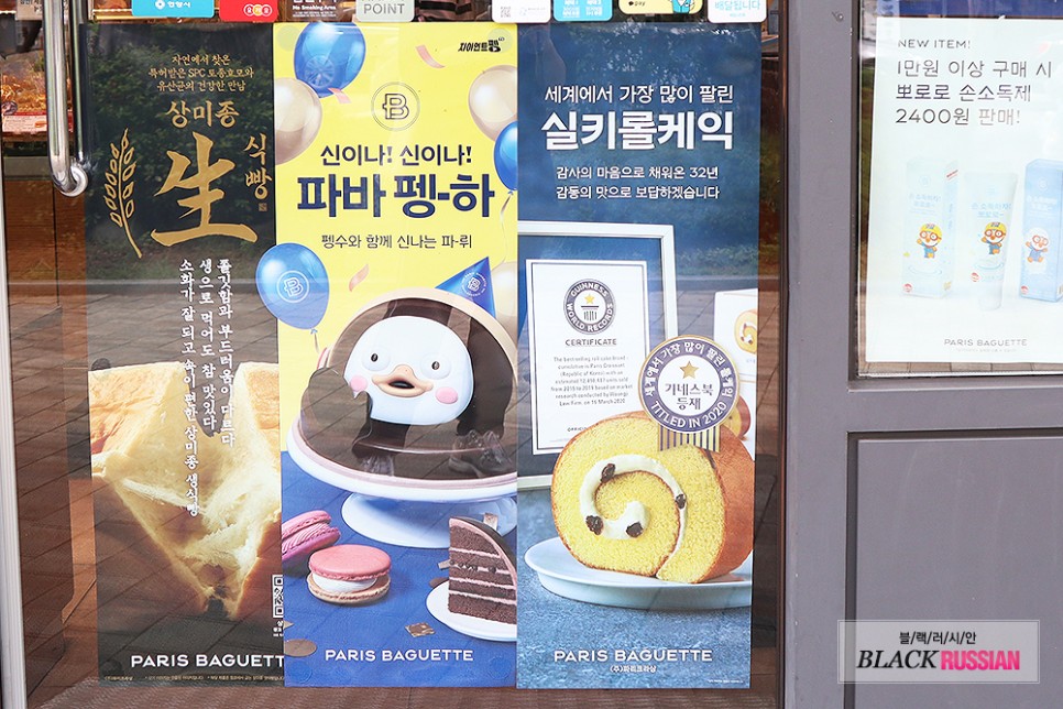 실키 롤 케이크의 기네스북 등록 소식은 이렇게 파리바게뜨 문 앞에 포스터가 붙어 있는 것을 보고 알았습니다.