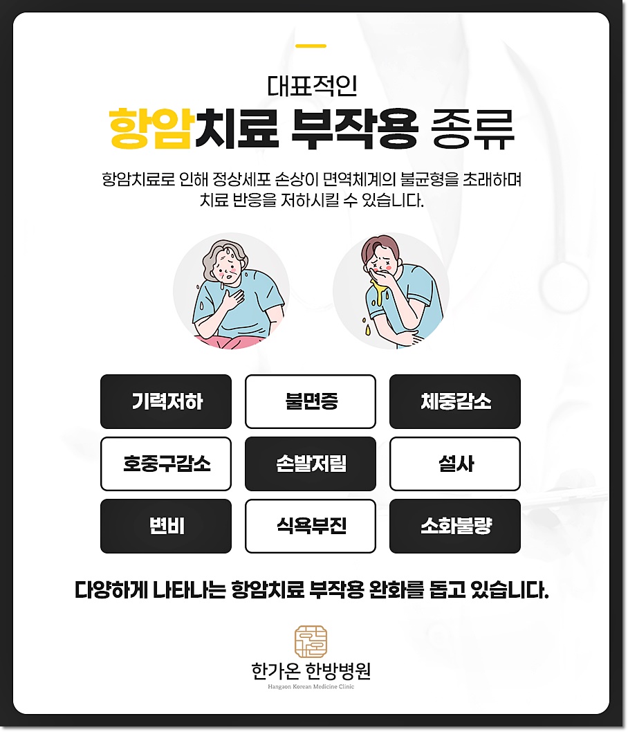 이것은 면역체계가 정상적이지 않기 때문에 일어날 수 있는 증상입니다 또한 표준치료를 받으면 전체적인 체력과 기력이 저하될 수 있습니다.