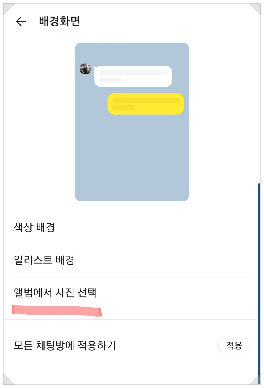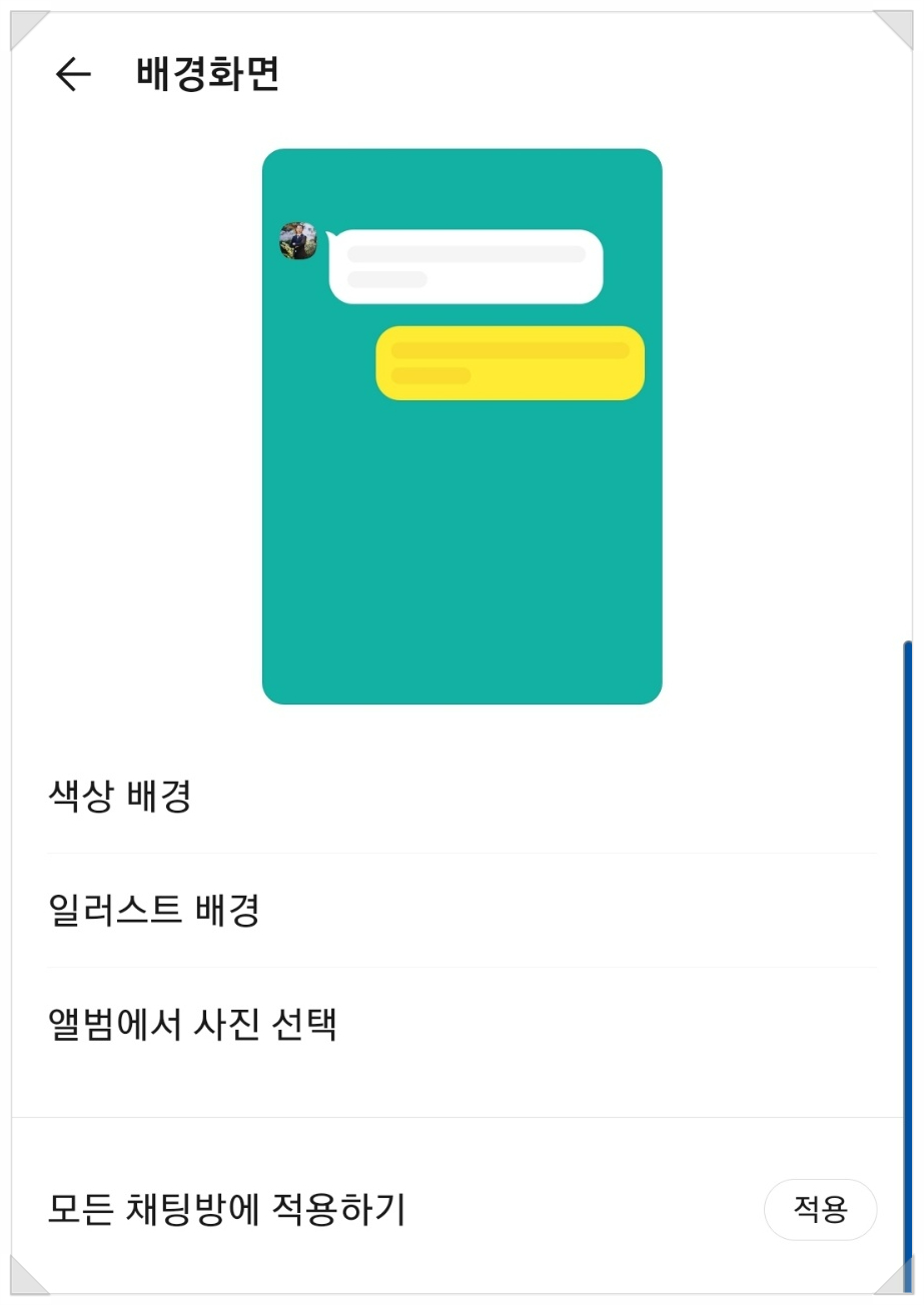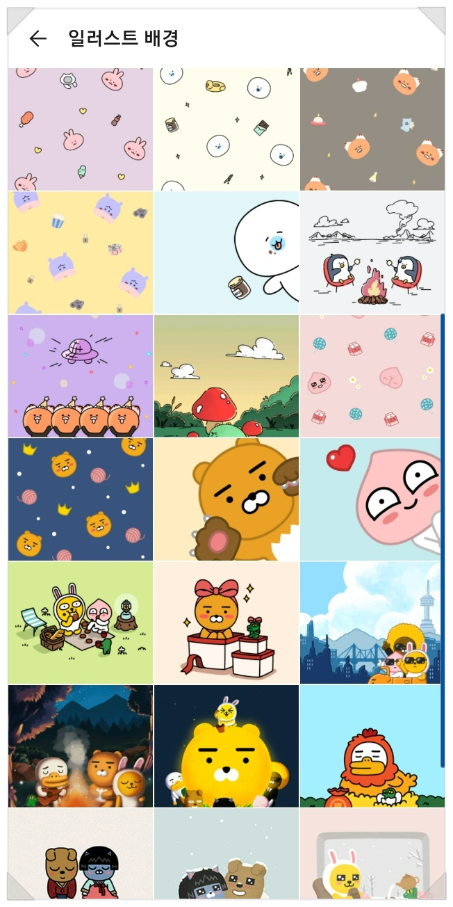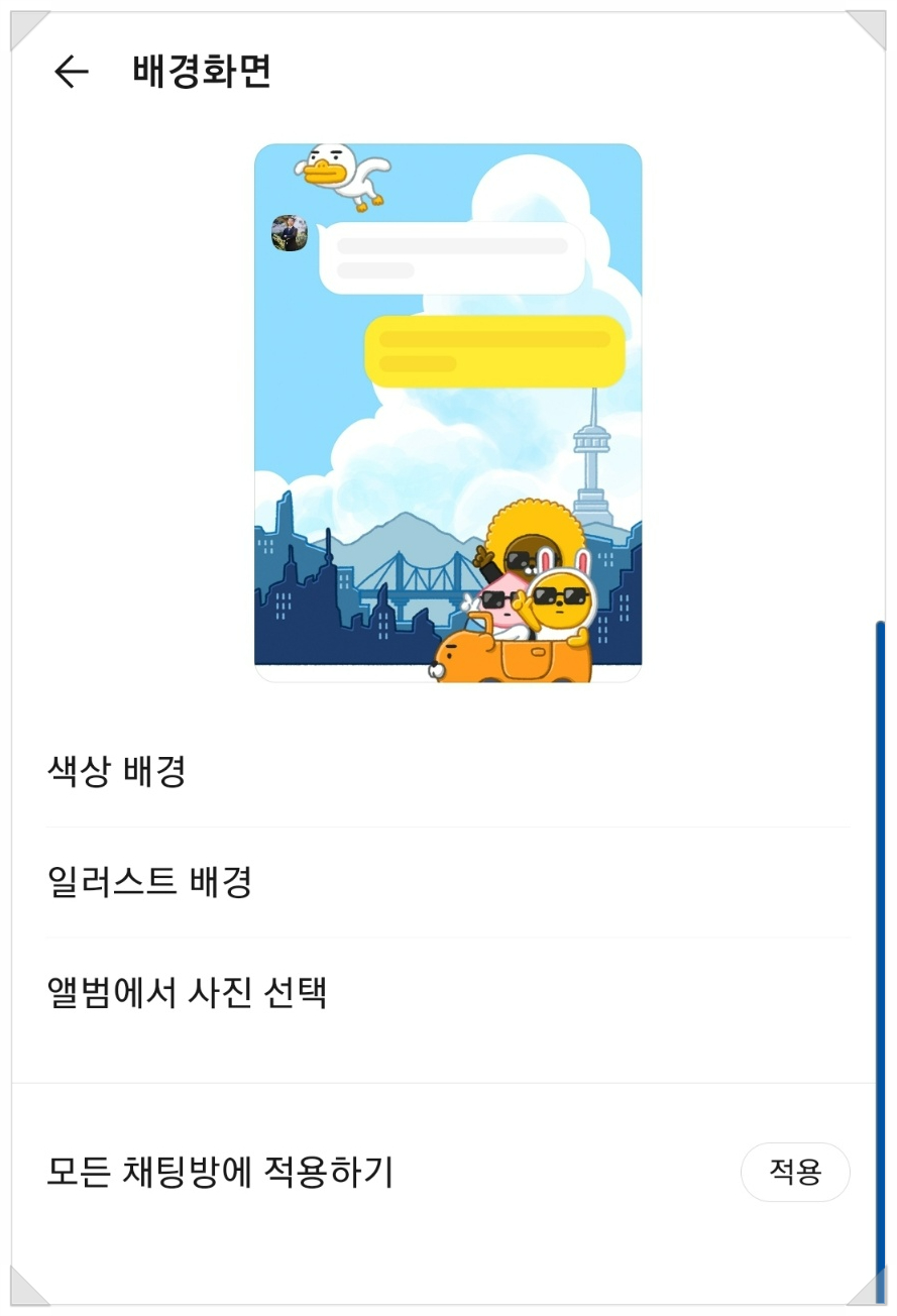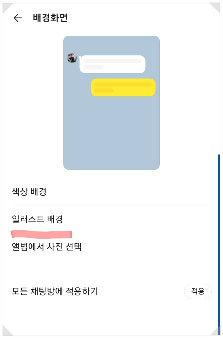 다음은 카톡으로 설정되어있는 일러스트 배경으로 바꿔볼게요!