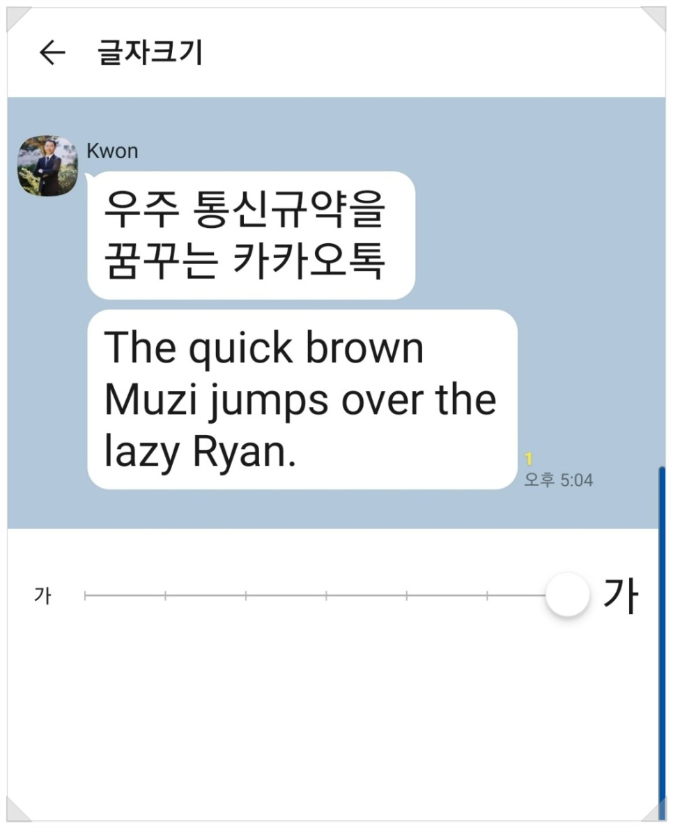 왼쪽 화면이 가장 작은 글자의 크기로 설정한 것이고 오른쪽은 가장 크게 조절한 것이지만 차이가 큽니다.