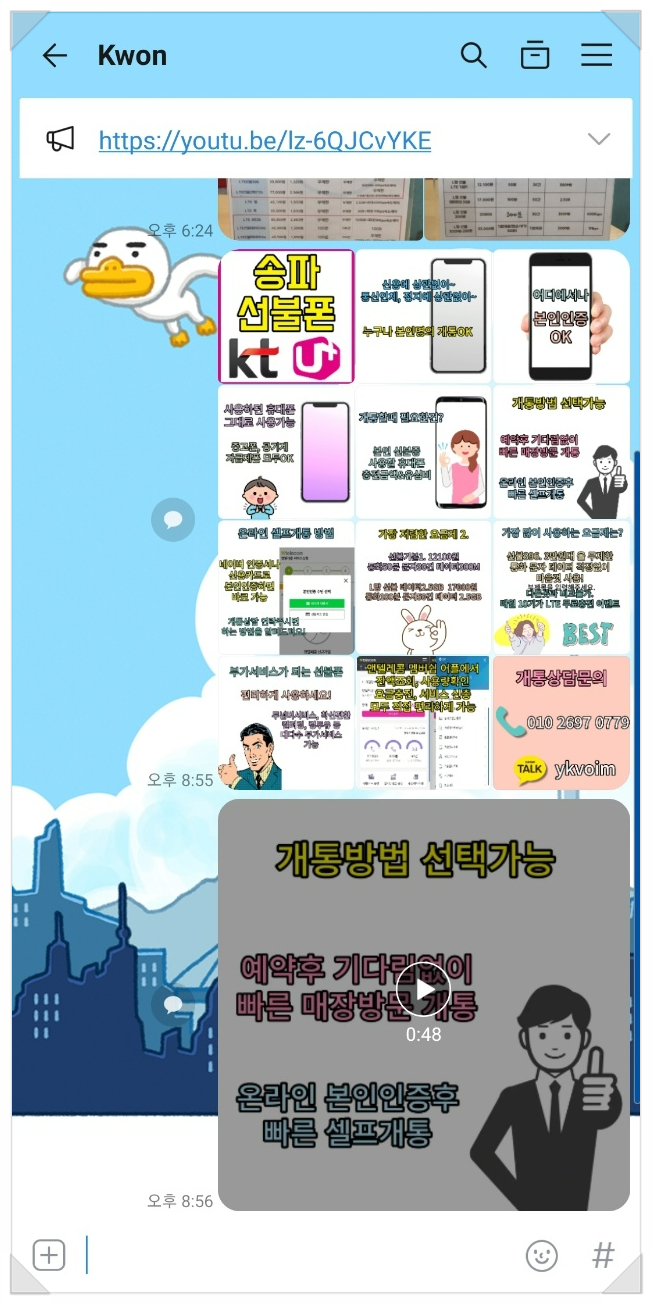 그러면 왼쪽 화면처럼 변환된 모습으로 뜨는데 제 대화창에 들어가면 오른쪽 화면처럼 바뀝니다.