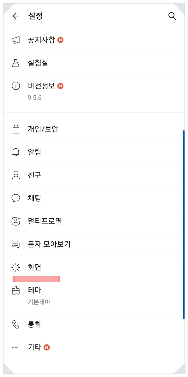 설정으로 들어가는 방법은 맨 아래에서 오른쪽 3점을 클릭하고