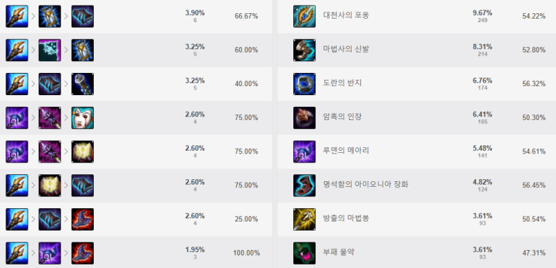 이번 시즌이 되면서 저는 아이템 트리를 바꿨어요.원래 위 사진처럼 예전에는 대천사나 로아에 갔었는데 요즘은 루덴로아 트리로 바꾸고 로아 대신 슈렐과 모렐로노미콘에 가줬으면 해서 며칠 전에 가봤는데 괜찮을 것 같아요.슈렐 대신 루덴로어도 좋아요.슈렐과 모렐로 체력 500 = 로아 체력 대신 슈렐마나 재생력 100%로 = 마나 수급 슈렐 액티비 효과가 높은 쿨타임 감소로 헤르메스 or 마관신에게 갈 수 있습니다.이속 5%로 주문력, 저렴한 가격을 버리는 옵션이 하나도 없어요! 슈렐을 쓰고 공간에 가서 E로 슬로우를 걸고 QWQ 콤비네이션도 좋습니다.