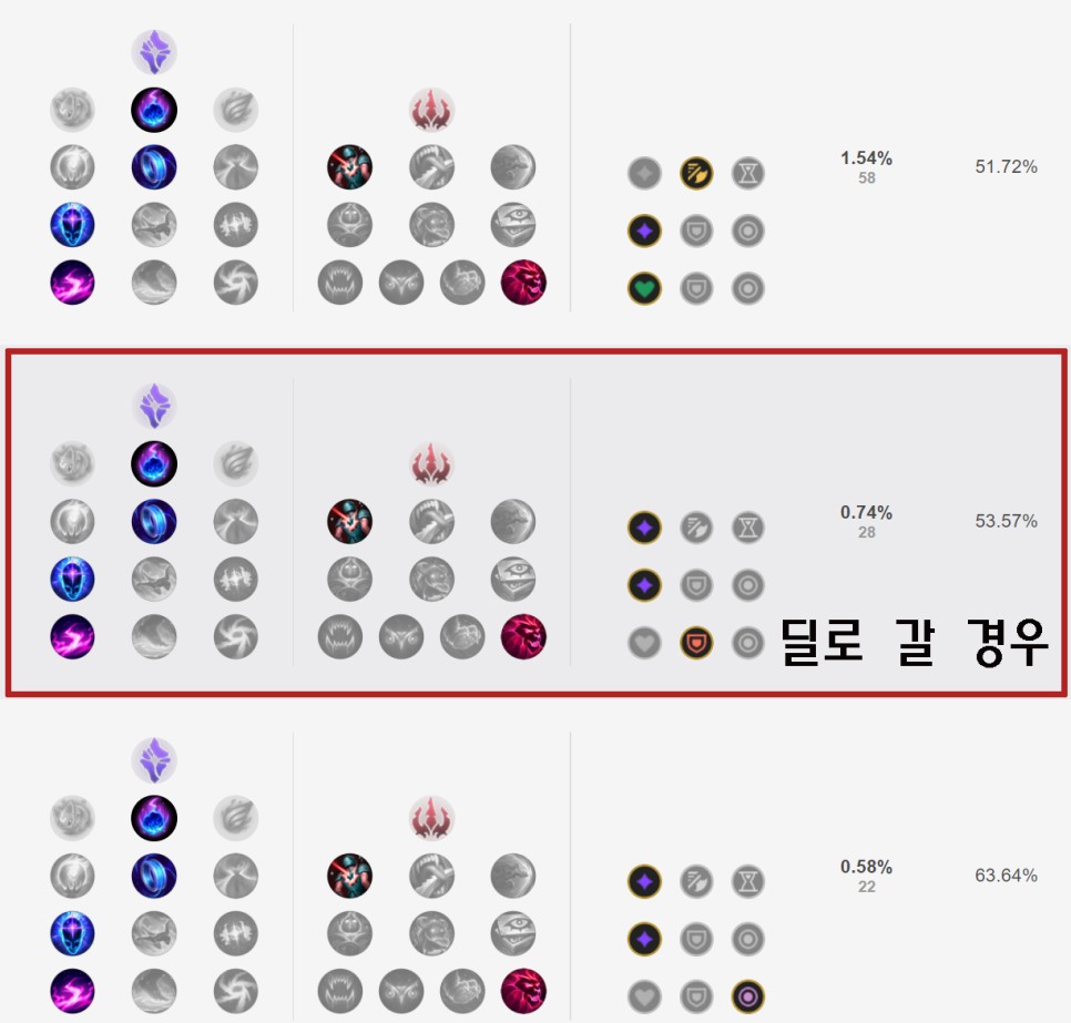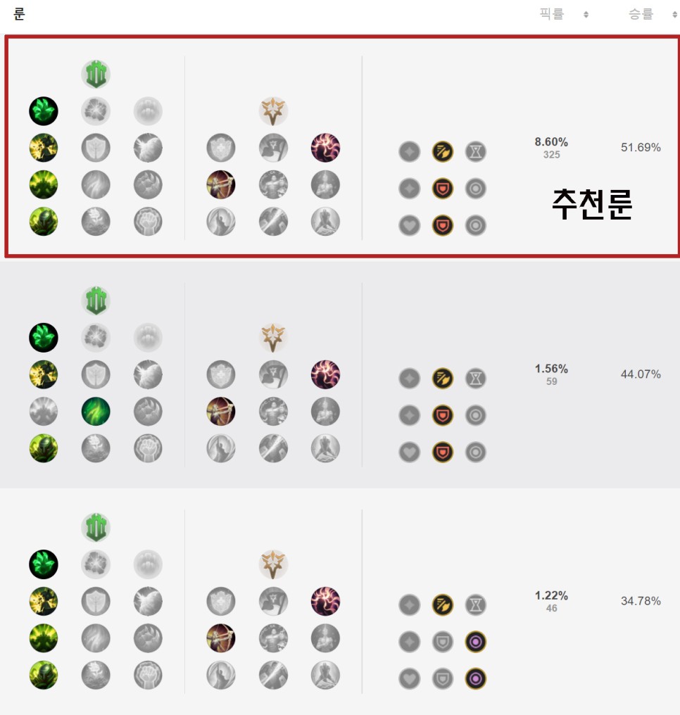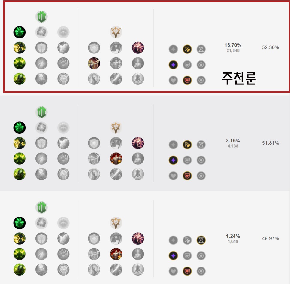 저는 착취룬에 가고 있습니다 유지력을 높이는데 좋다고 생각합니다. 탱커의 역할로 어둠의 수확을 받지 않고 착취 룬에 가고 있어요.생각보다 착취를 잘해요 그래서 한번 써보세요 어둠의 수확이나 유성보다 좋은 것 같아요그래도 딜에 가고 싶으신 분들은 아래 룬에 관련된 내용을 좀 더 자세하게 추가했어요