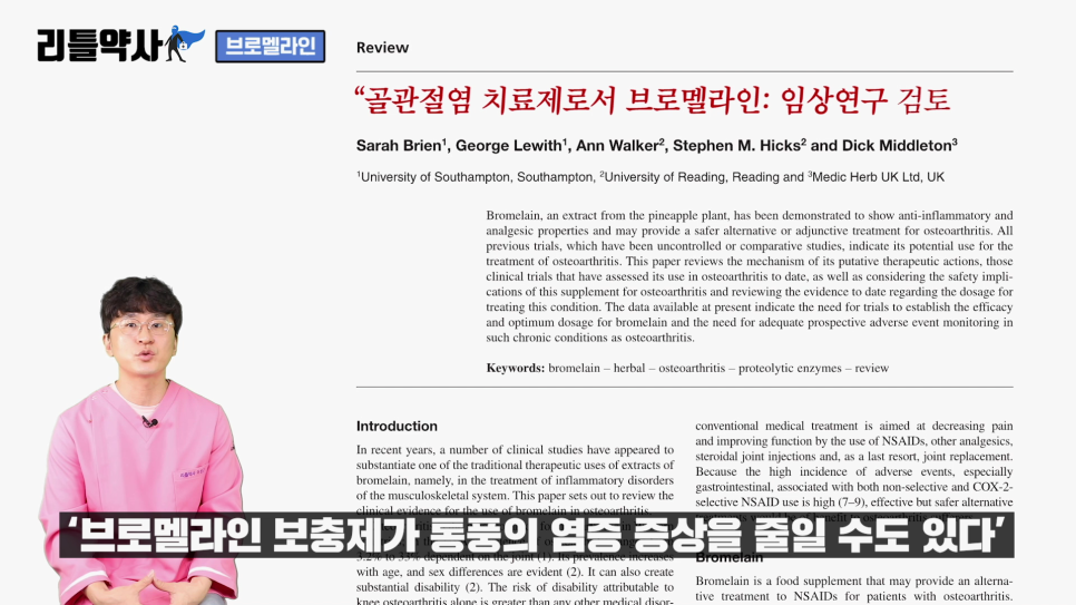 관절염 등의 임상연구를 검토한 결과 브로머라인 보충제가 통풍의 염증 증상을 줄일 수 있다.라고 시사해 왔습니다.