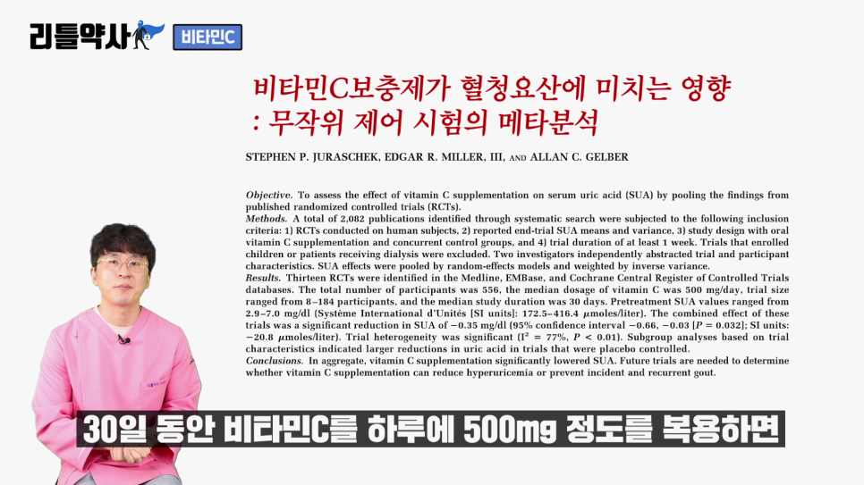 아까 비타민C가 500mg선에서 요산 배출을 돕는다고 하셨는데