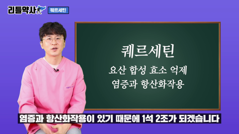 방금 말씀드렸지만, 쿠에르세틴도 요산 합성 효소를 억제하거나 염증과 항산화 작용이 있기 때문에 일석이조가 됩니다.