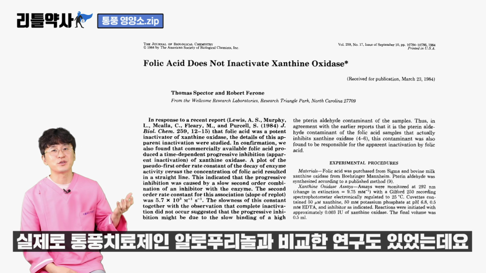 하지만 실제로 통풍 치료제인 알로프리놀과 비교한 연구도 있었지만 연구에 사용된 엽산의 용량이 엄청나더라고요.